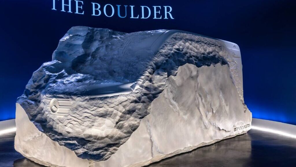 Mercedes-Benz a ales să anunțe lansarea unui nou model Sprinter într-un mod neobișnuit. Compania a folosit o sculptură ce arată vag conturul noului Sprinter.